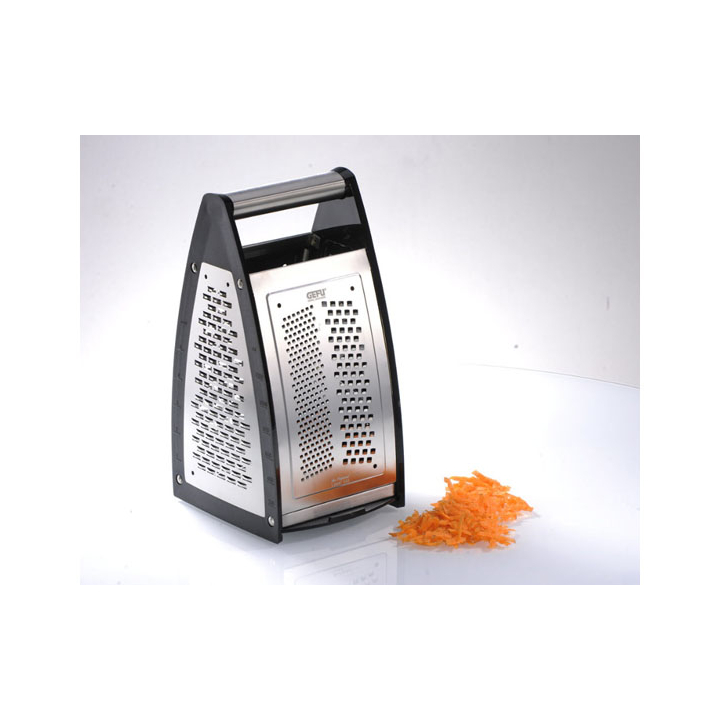 Рендето Gefu new има 4 режещи повърхности за настъргване на желаните от Вас продукти. 4-стенното ренде притежава удобна дръжка за по-безопасно рязане. Подходящо за зеленчуци и сирена с възможност за заключване на дъното.