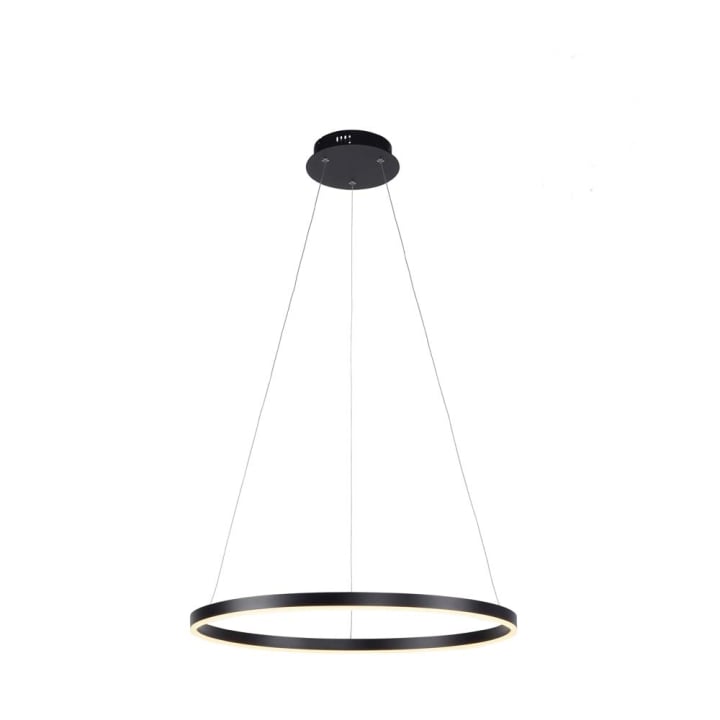 Атрактивно, метално тяло в кръгла форма, спуснато елегантно от тавана с три почти невидими въжета - сякаш самостоятелен светещ обръч е позициониран над масата. Модерно и впечатляващо решение на дизайнерите, с постигнат ефектен резултат. Имате възможност да поставите този LED пендел в трапезарията, в дневната зона или в офиса, с гаранция за подчертан акцент в интериора.