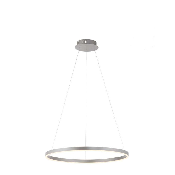 Атрактивно, метално тяло в кръгла форма, спуснато елегантно от тавана с три почти невидими въжета - сякаш самостоятелен светещ обръч е позициониран над масата. Модерно и впечатляващо решение на дизайнерите, с постигнат ефектен резултат. Имате възможност да поставите този LED пендел в трапезарията, в дневната зона или в офиса, с гаранция за подчертан акцент в интериора.