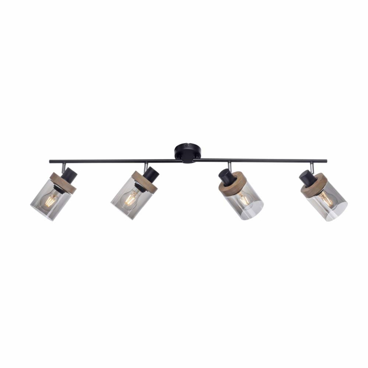 Спот в черно и дървесно със стъклени абажури, 4х40W E27, 41/30/24 см