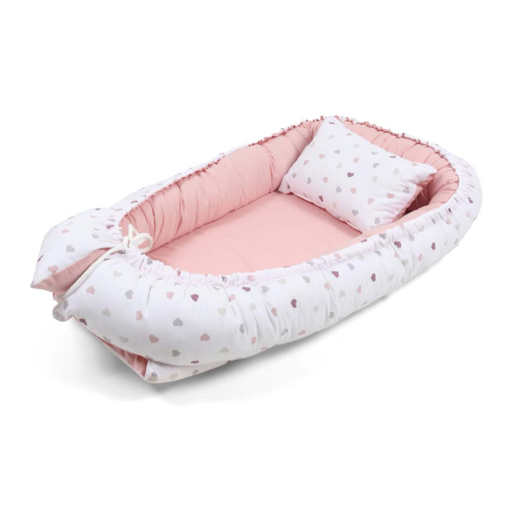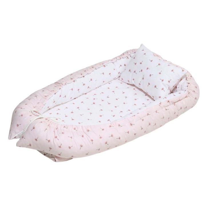 Многофункционалното бебешко гнездо с възглавничка може да се използва в детското креватче или кошара, в колата и дори на леглото на родителите. То осигурява защита по време на сън и създава комфорт и спокойствие както за малчугана, така и за майката. Подходящо е за бебета между 0-8 месеца. Външното покритие е от 100% памук. Може да се използва с малката възглавничка или отделно.
