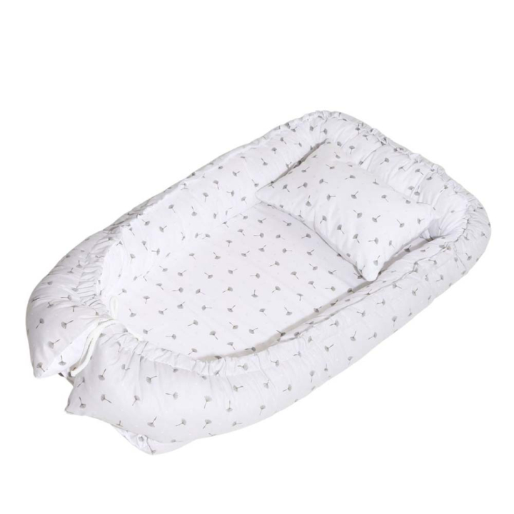 Многофункционалното бебешко гнездо с възглавничка може да се използва в детското креватче или кошара, в колата и дори на леглото на родителите. То осигурява защита по време на сън и създава комфорт и спокойствие както за малчугана, така и за майката. Подходящо е за бебета между 0-8 месеца. Външното покритие е от 100% памук. Може да се използва с малката възглавничка или отделно.