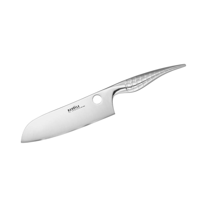 Серията ножове REPTILE с марка SAMURA грабва от пръв поглед с внушаващата респект визия, олицетворяваща скоростта, силата и инстинкта на гигантските влечуги от мезозойската ера, водени от страст за оцеляване. Фокусирани върху минимализма и гъвкавостта, ножовете от тази екзотична колекция са вдъхновени от стихията на могъщите животни и съчетават анималистична с футуристична технология за производство на модерни кухненски прибори. Всяко ултралеко стоманено острие AUS-10 е шлифовано чрез изпъкнало заточване за повишена издръжливост, по-дълготрайна острота и по-малко съпротивление, осигурявайки идеално гладко рязане всеки път.