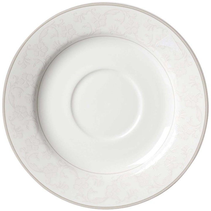 Чинийката грабва вниманието с чиста елегантност и пудрен флорален декор. Благодарение на специален процес, порцеланът получава едва доловим релеф, който характеризира всички съдове от колекцията и им придава сензитивна индивидуалност.
