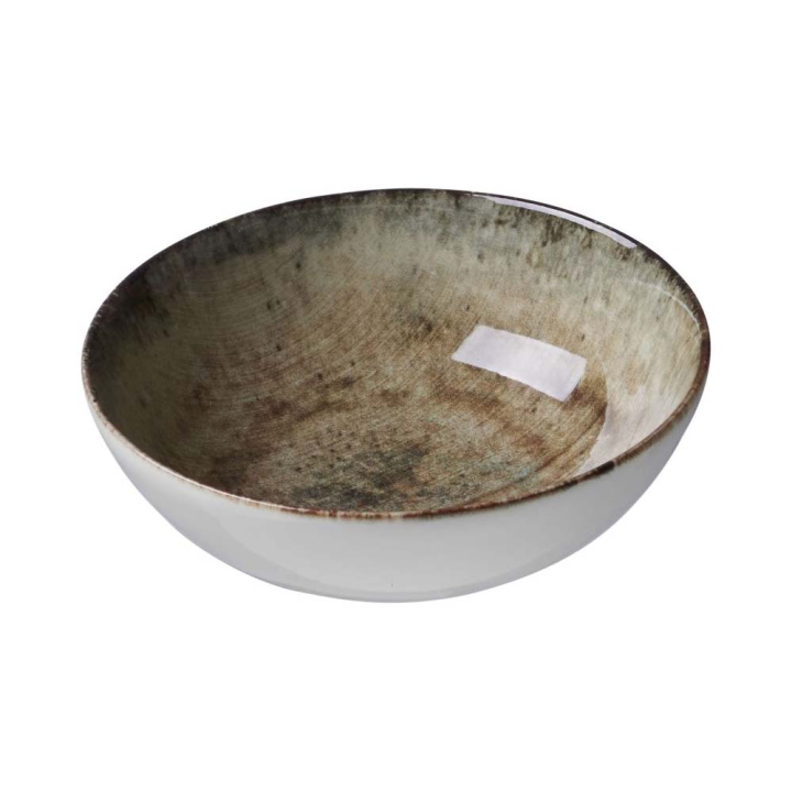 Висококачественият порцелан ще предложи много добър отговор на вашите взискателни очаквания! Купата от серия Faia е изработенa по специална технология на изпичане, с получени нестандартна външност и ефектна повърхност. Преливането на бежово, зелено и кафяво е резултат от прецизното отношение на майсторите към детайла, а деликатното каменно излъчване от шарката на земните тонове допълва стила на всяка маса със самородно очарование.
