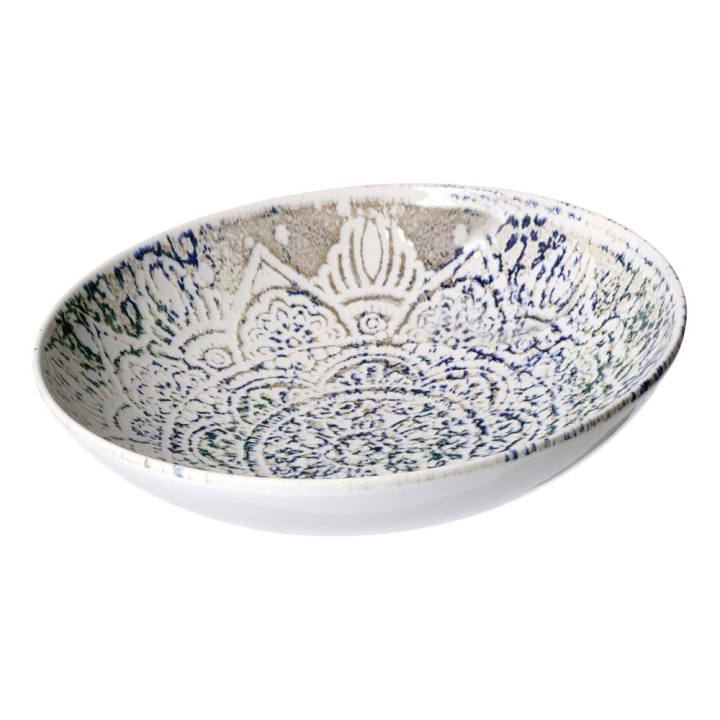 Като пътуване към Ориента: вдъхновение за дизайна на Luigi са ориенталските плочки. Благодарение на леко износения си вид, великолепната орнаментика, нанесена върху чинията с помощта на дигитална керамична печатна технология, тя изглежда изключително автентична и антична. В комбинация с другите съдове от колекцията, ще можете да преобразите масата.