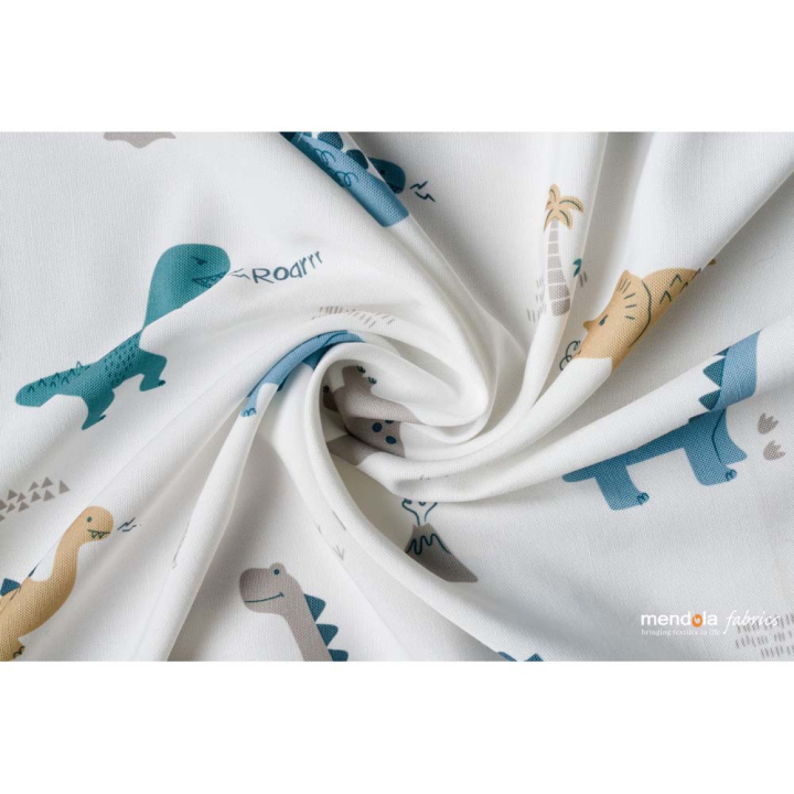 Плътен плат за детска завеса с принт цветни динозавърчета, ширина 280 см.