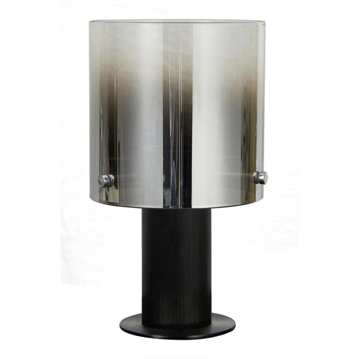 Черна настолна лампа с абажур от опушено стъкло - 1х60W, E27