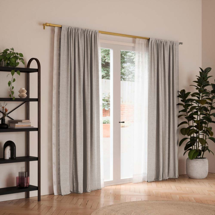 Пердетата са в бежов цвят и се превръщат в перфектния декоративен и функционален аксесоар във всеки интериор. Плътната материя не позволява на светлината да попречи на моментите за следобеден сън или почивка. Вечер, пердето осигурява желаното уединение и комфорт, когато лампите в стаята светят.