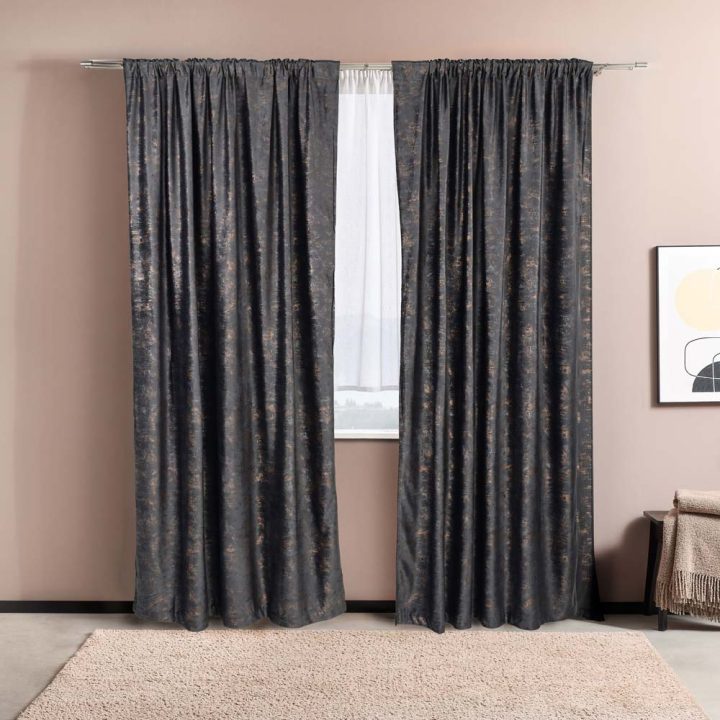 Пердетата са в сиви нюанси и се превръщат в основен акцент във всеки интериор. Плътната материя не позволява на светлината да попречи на моментите за следобеден сън или почивка. Вечер, пердето осигурява желаното уединение и комфорт, когато лампите в стаята светят.