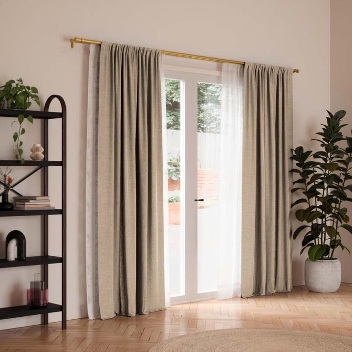 Комплект от 2 броя плътни блекаут пердета с перделик за закачане на тръбен или релсов корниз, 150/250 см