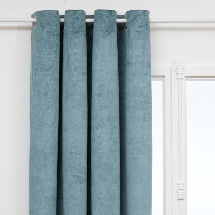 Плътно перде в син цвят с капси за закачане на тръбен корниз, 135/260 см