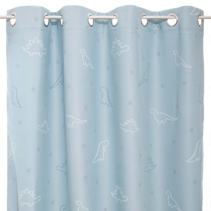 Пердето добавя стилен и оригиналенщрих към интериора. Пъстрият дизайн с динозаври радва всеки малчуган дори през нощта, когато рисунките заблещукат в стаята. Лесно е за закачане и се плъзга плавно, благодарение на металните си капси.