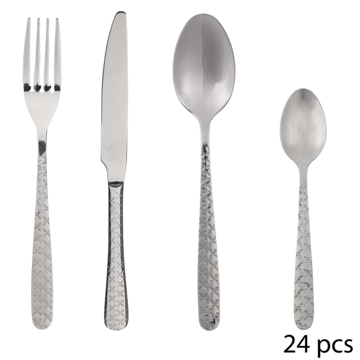Комплект прибори за хранене от 24 части, изработени от неръждаема стомана със сребриста повърхност