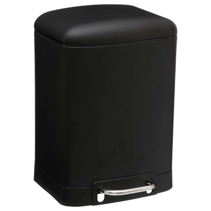 Черен стоманен кош с педал и вътрешна кофа, 6 л, 23/22.5/32.5 см