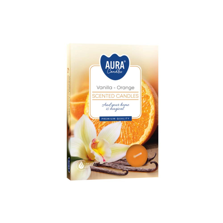 АРОМАТНИ ЧАЕНИ СВЕЩИ ВАНИЛИЯ И ПОРТОКАЛ 6 БР. AURA 65458010006
