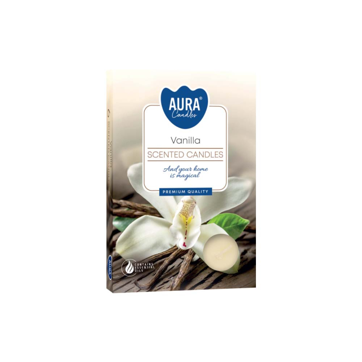 АРОМАТНИ ЧАЕНИ СВЕЩИ ВАНИЛИЯ 6 БР. AURA 65458010105