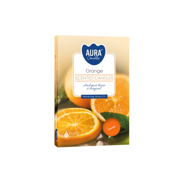 АРОМАТНИ ЧАЕНИ СВЕЩИ ПОРТОКАЛ СИ 6 БР. AURA 65458010297