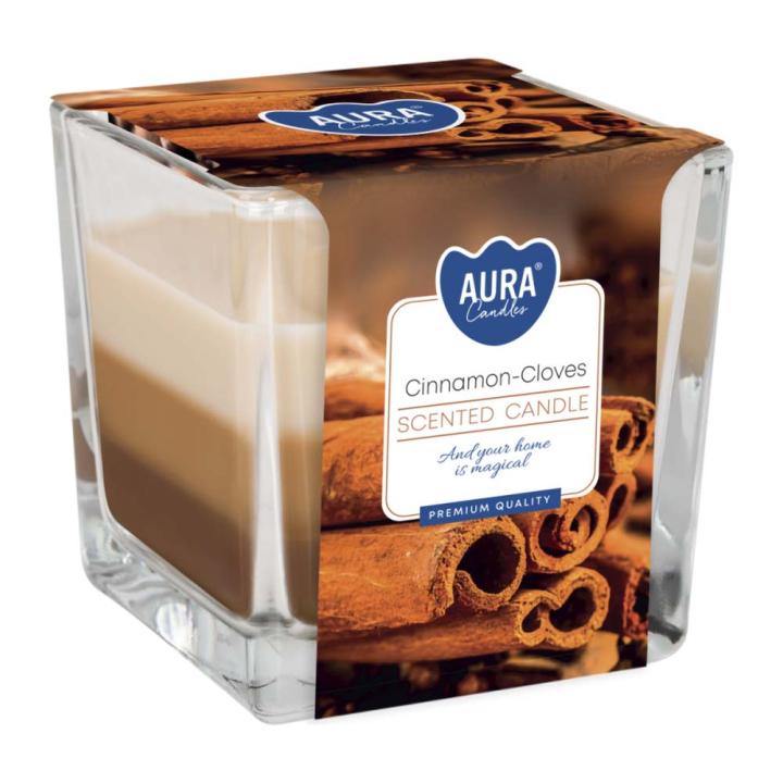 АРОМАТНА ТРИЦВЕТНА СВЕЩ 170 ГР. КАНЕЛА AURA 65458010300