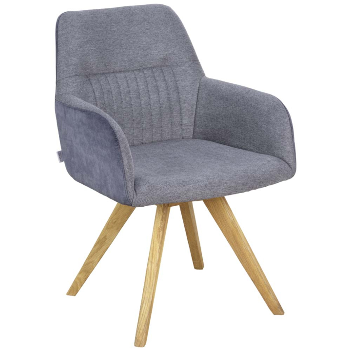 Столът съчетава функционалност и елегантност в един уникален дизайн. С подлакътници и въртящ механизъм, той предлага изключителен комфорт и свобода на движение, като същевременно придава изисканост на всяко пространство. Изработен от сива дамаска, този стол е перфектният избор за уюта и приветливата обстановка във вашата трапезария.