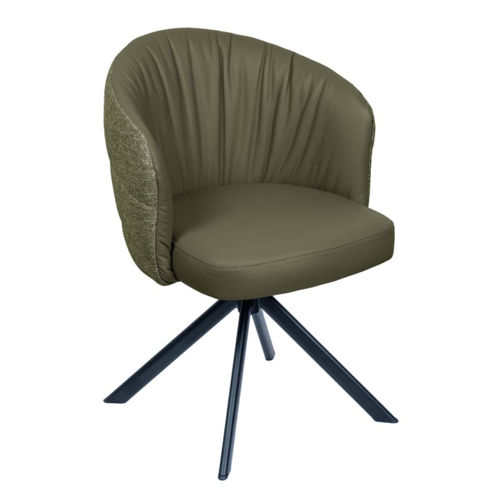 Зелен трапезен стол Мара с естествена кожа, подлакътници и въртящ механизъм, размери: 59/62/82 см