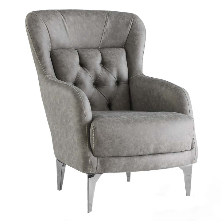 Дизайнерски фотьойл с размери Ш:70/Д:80/В:100 см. Моделът притежава атрактивна визия, подходящо обзавеждане за вашия дом или офис. Дамаската е произведена от текстил с красиви декоративни шевове. Седалката и облегалката са с пълнеж от високоеластична пяна, гарантираща голямо удобството и комфорт по време на седене. Фотьойлът ще ви допадне с уникалния си дизайн с капитонирана облегалка, сливаща се с подлакътниците и седалката, поставена на четири хромирани крачета, стилно завършващи цялостната визия на модела.