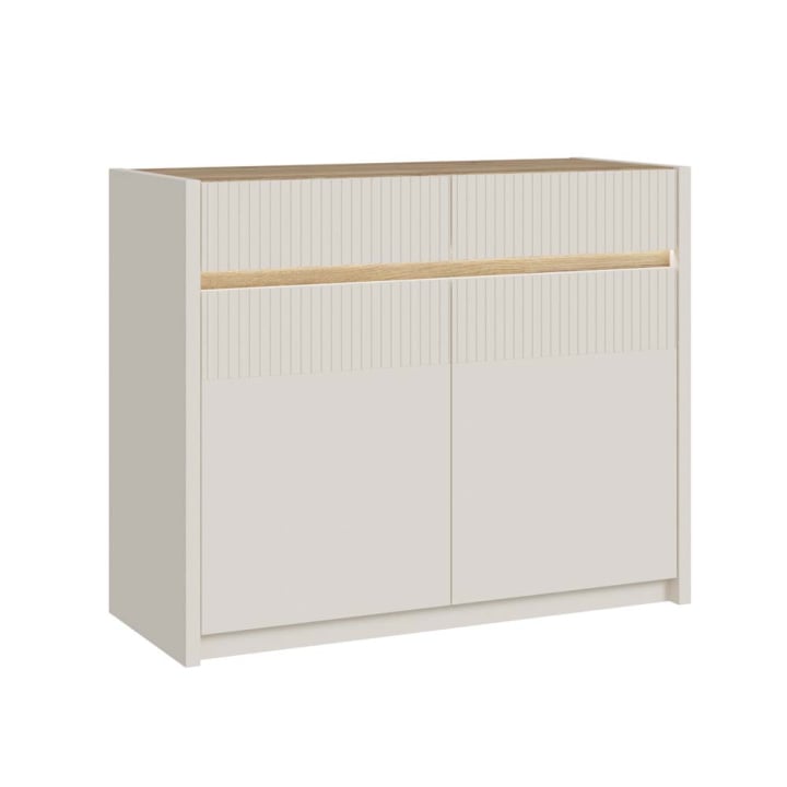 Обширният плот на комода предлага удобно пространство за позициониране на предпочитан от вас декор, а вътрешното разпределение предоставя 2 врати и 2 чекмеджета.