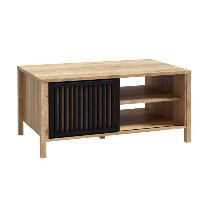 Стилен холен елемент с практично разпределение за вашето холно помещение, проектирана с акцент, апликация от черна решетка, зад която ще откриете скрито пространство за вещи, 1 рафт и 1 чекмедже.