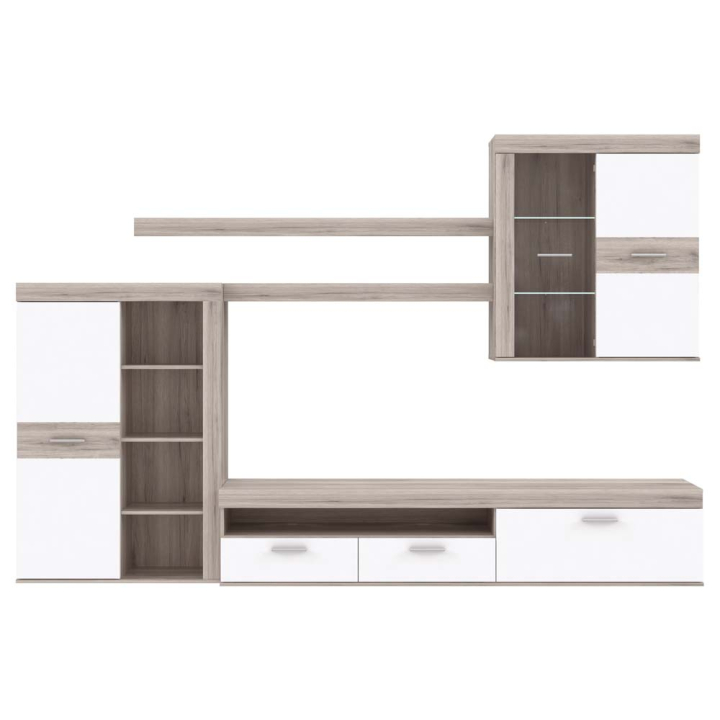 Инсталацията на елементите не изисква свързване помежду им, което прави процеса на монтаж още по-лесен. Цветовото съчетание на бяло и пясъчен дъб ще допринесе с елегантност и хармония на вашия дом.