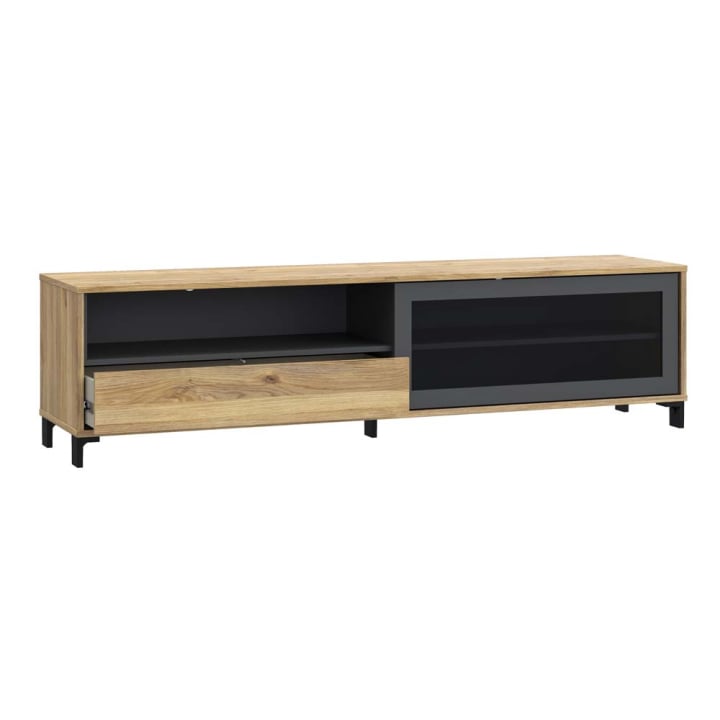 ТВ шкаф Саут Бийч с 1 врата и 1 чекмедже в декор антрацит и дъб маувела, размери: 180,5/42/47,2 см