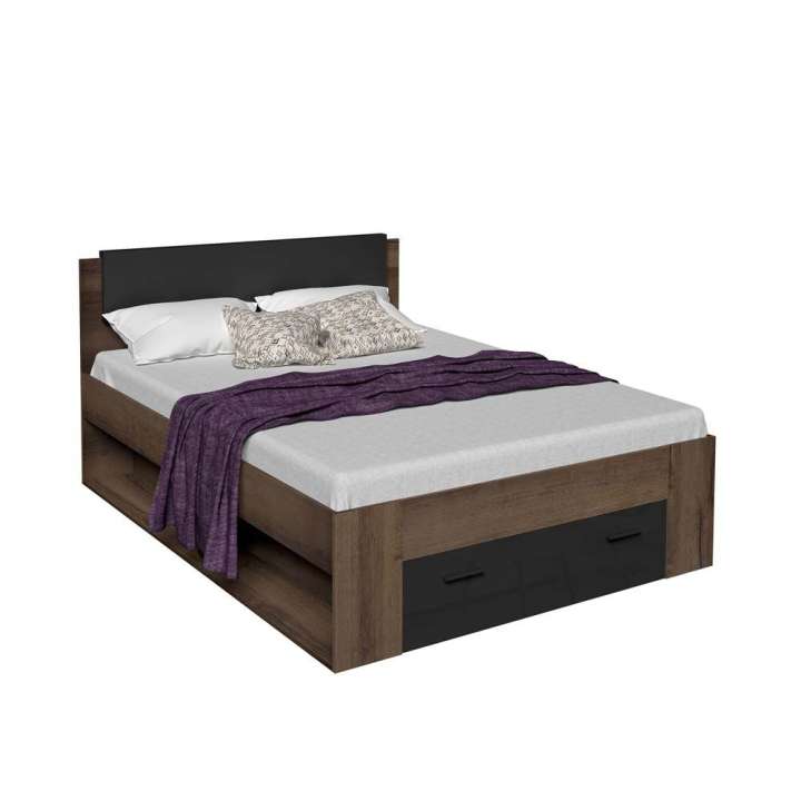 Легло с табла с възглавница от еко кожа с размери на модела Ш:164/Д:200/В:100 см. Моделът е здрав и стабилен произведен от висококачествено ПДЧ, за матрак с размери 160/200 см, с рамка в тъмен дървесен декор. Проектирано е с 2 странични ниши, удобно място за поставянето на книги, списания и други лични вещи, както и 1 чекмедже с фронт от луксозно черно стъкло с две дръжки. Практичното чекмедже под долната табла със сигурност ще ви допадне. Ще добави повече място за съхранение на одеала, завивки, възглавници и други лични вещи в спалнята. Към леглото трябва да изберете матрак със структура и твърдост според личните ви предпочитания.