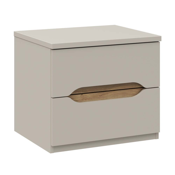 Нощното шкафче Едвал допълва интериора с финес и практичност. Компактната форма, мекият кашмирен тон и дъбовите акценти създават усещане за уют и завършеност до леглото. Изчистеният силует го правят идеален избор за съвременна спалня.