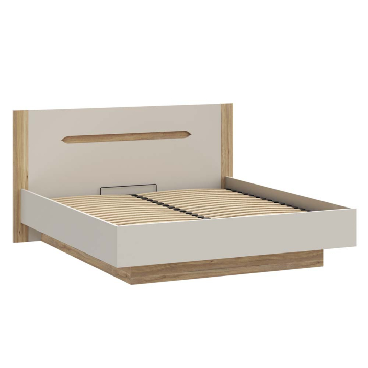 Леглото Едвал внася в спалнята усещане за спокойствие, уют и балансирана елегантност. Меките бежови тонове, съчетани с топъл дъбов декор, създават хармонична атмосфера, подходяща както за модерен, така и за по-класически интериор. Правите линии, масивната табла и изчистеният силует внасят усещане за стабилност, превръщайки леглото в естествен фокус на помещението.