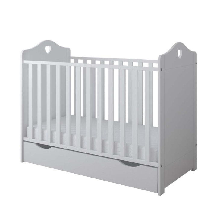 Детско бяло креватче-кошара с 3 нива на височина и сваляеми 3 бр. летви, предназначено за матрак 60/120 см, изработено от чамова дървесина