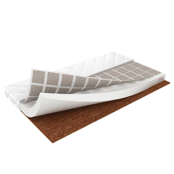 Комбинацията от кокосови влакна и люспи от елда гарантира стабилно позициониране на детето по време на сън и почивка. Елдата се характеризира с осигуряване на много здравословен масаж, който подобрява кръвообращението. Матракът се адаптира идеално към извивките на тялото и предотвратява изкривявания на гръбначния стълб. Вложените материали са с антиалергични и антибактериални свойства. Висококачествената полиуретанова пяна е с отлична еластичност и издръжливост. Изключително безопасен за малки деца, продуктът е със сертификат Oeko-Tex standard 100.