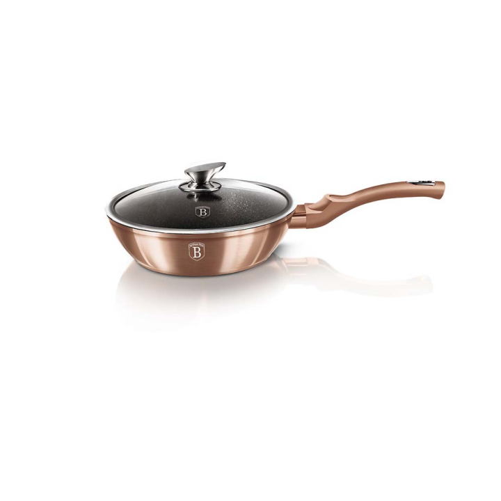 Тиган Ф24 см от серия ROSE GOLD, изработен от кован алуминий с 3-слойно гранитно-мраморно незалепващо покритие в цвят розово злато