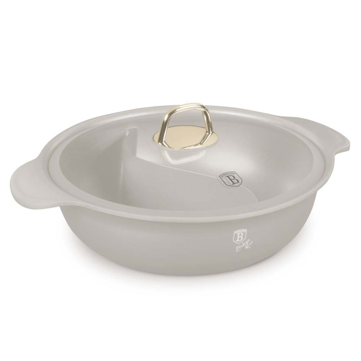 Бежова тенджера с 2 отделения, изработена от кован алуминий с 3-слойно гранитно-мраморно незалепващо покритие, Ф30 см