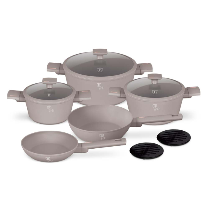 Дизайнът на комплекта е специално разработен за Berlinger Haus – кремавият цвят на съдовете ги прави изключително стилни за всяка кухня. Незалепващото им покритие TitanPro е три пъти по-устойчиво от стандартното покритие. А с помощта на ергономичните дръжки и стъклените капаци готвите лесно и с удоволствие.