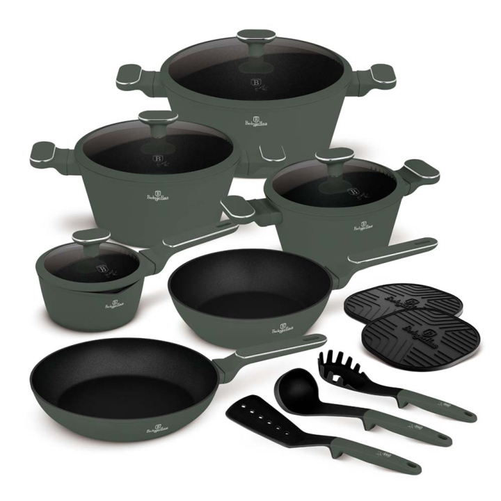 Комплектът е изработен от кованалуминий с трислойно незалепващо TitanPro покритие. По време на готвене, температурата се разпределя равномерно. Съдовете са със стъкленикапаци със силиконов ръб с меко затварянеи отвор за па̀ра. Подходящи са за всички видове котлони, включително индукционни и са без наличие на PFOA, олово и кадмий. Почистват се лесно на ръка или в съдомиялна машина.