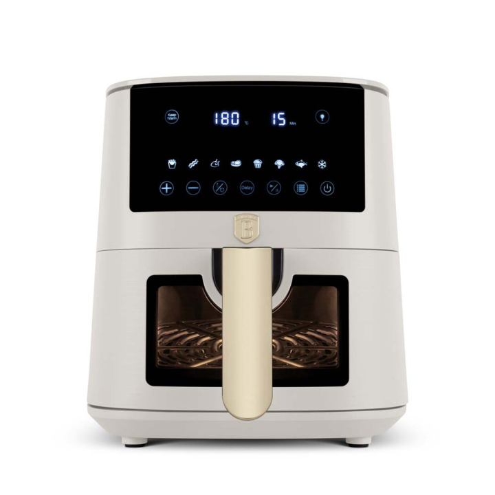 С air fryer Sahara от Berlinger Haus се наслаждавате на стилното и здравословно готвене у дома. Въздушният фритюрник разполага с видим прозорец и цифрова регулация на температурата, а с капацитета от 5л приготвяте любимите ястия на цялото семейство. С air fryer Sahara може да поддържате температурата на храната, докато я сервирате и да задавате времето за готвене предварително.