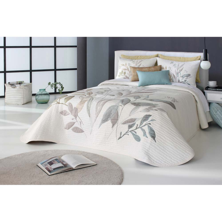Елегантна кувертюра, която ще допълни стилово облика на спалнята. Меките нюанси на цветовете и красивите растителни мотиви дават основа за реализиране на търсеното въздействие в интериора. Шалтето е подходящо както за зимата, така и за лятото, благодарение на постигнатата хармония между фина изработка, лека, но плътна материя и модерно излъчване.