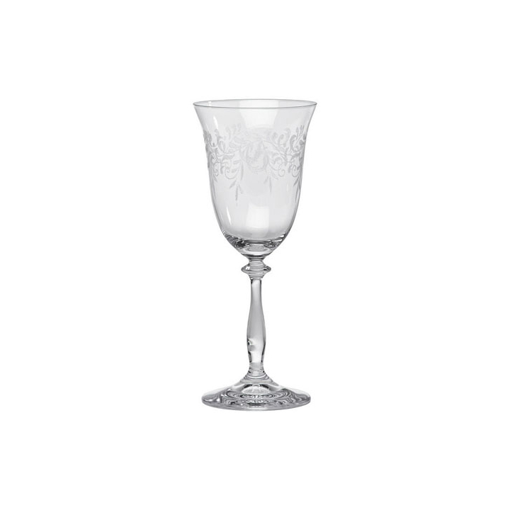 Чашите от тази романтична серия впечатляват с благородство и висококачествена изработка. Елегантните форми и фините декорации създават усещане за изискана атмосфера, подходяща за всички специални моменти. Прозрачността на кристалното стъкло е подчертана от искрящ блясък и деликатни извивки при всеки съд.