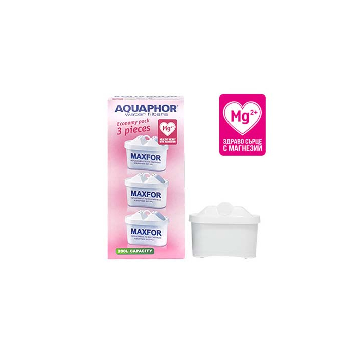Аквафор MAXFOR+ (Mg) насища водата с магнезий до оптималните възможни нива и защитава сърцето, костите и мускулите от негативните влияния на съвременния ритъм на живот.