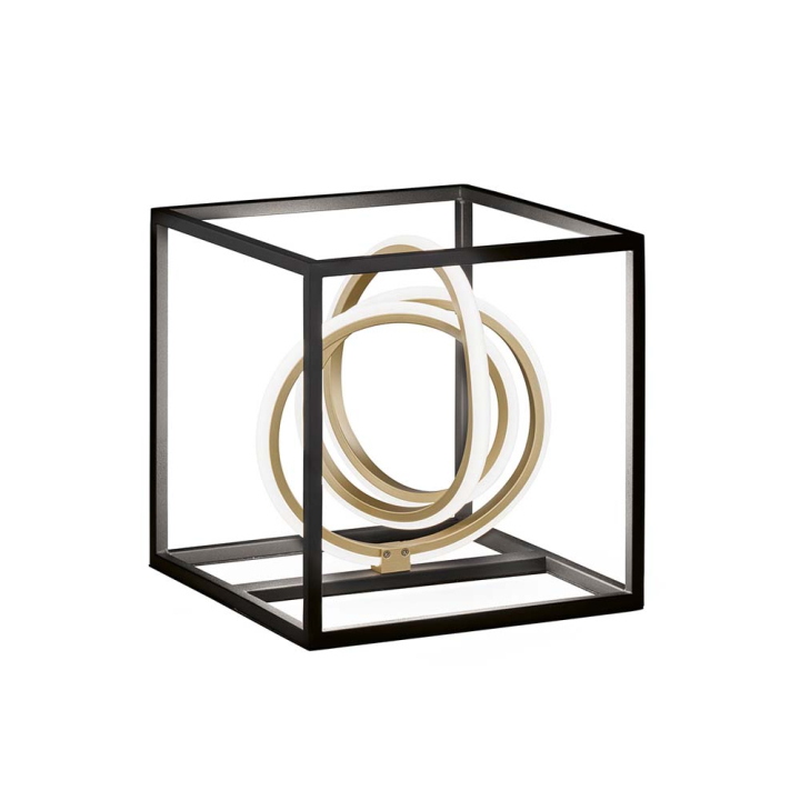 Тази оригинална настолна лампа съчетава кубичен, тъмен вид на рамката с изкусно извит бяло-златист осветителен елемент - атрактивно присъствие във всеки интериор. Можете да регулирате топлото бяло и цветовата температура чрез Touch dim на три нива, получавайки точната атмосфера, която ще отговори на вашето настроение. Когато е включена, лампата създава уникални оптични ефекти, които изглеждат прекрасно на тъмен фон. Артистичният дизайн, в съчетание с осветлението, гарантира, че малкият осветител ще бъде любим декоративен елемент в пространството.
