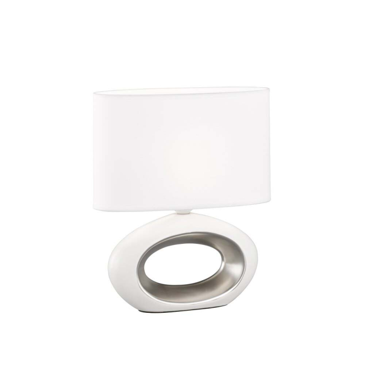 Настолна декоративна лампа с керамична стойка и текстилен абажур в бяло и хром, E14, 40W