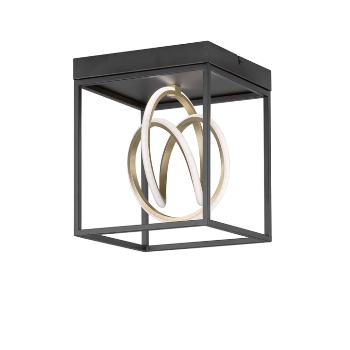 Тази оригинална плафониера съчетава кубичен, тъмен вид на рамката с изкусно извит бяло-златист осветителен елемент - атрактивно присъствие във всеки интериор. Можете да регулирате топлото бяло и цветовата температура чрез дистанционно управление, получавайки точната атмосфера, която ще отговори на вашето настроение. Когато е включена, лампата създава уникални оптични ефекти, които изглеждат прекрасно на тъмен фон. Артистичният дизайн, в съчетание с осветлението, гарантира, че малкият осветител ще бъде любим декоративен елемент в пространството.