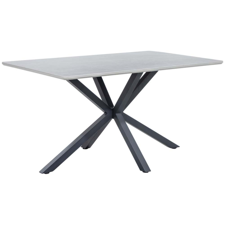 Сива трапезна маса Хералд с керамичен плот и черна метална основа, размери: 140/90/76 см