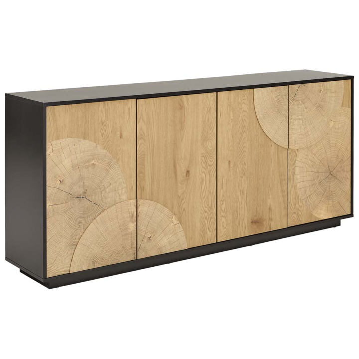 Комод Ууди с 4 врати в декор дъб и черно, размери: 180/40/81 см