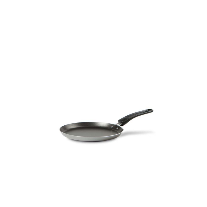 Елегантен съд с модерен дизайн, с красиво сребристо покритие и ергономична черна дръжка от матов бакелит. Обновете кулинарния кът с тиган за любимите на всички палачинки, притежаващ характерните за италианската марка TVS качество и висока устойчивост.
