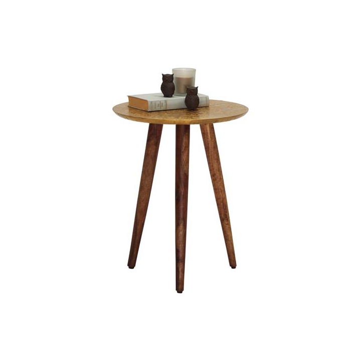 Помощна маса във винтидж стил с дървени крака и метален плот, 40/40/50 см